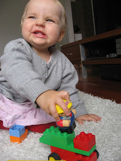 Ja kas, arkihan se sieltä pölähtään vastaan, kun astun töistä kotiin. Asunto ihanan sotkuisena, vauva eikun taapero, ihanan kylläisenä ja pirteänä ja isäntä räjähtäneenä. (...ahaa, tuoltako näytin itse viimeisen vuoden ajan...). Homma hoituu näköjään ilman äitiäkin!
